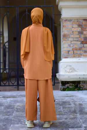 A two-piece outfit that combines modesty and comfort. With its classic pleated design, stylish collar neckline, concealed button down style, buttoned cuff and wide leg trousers, this is perfect for any occasion. Its baggy and relaxed fit will give you an effortlessly modest and stylish look even during the summers. Refresh your wardrobe with elegant modest essentials.